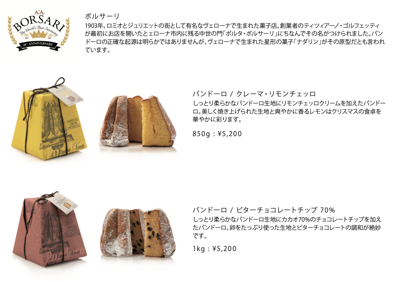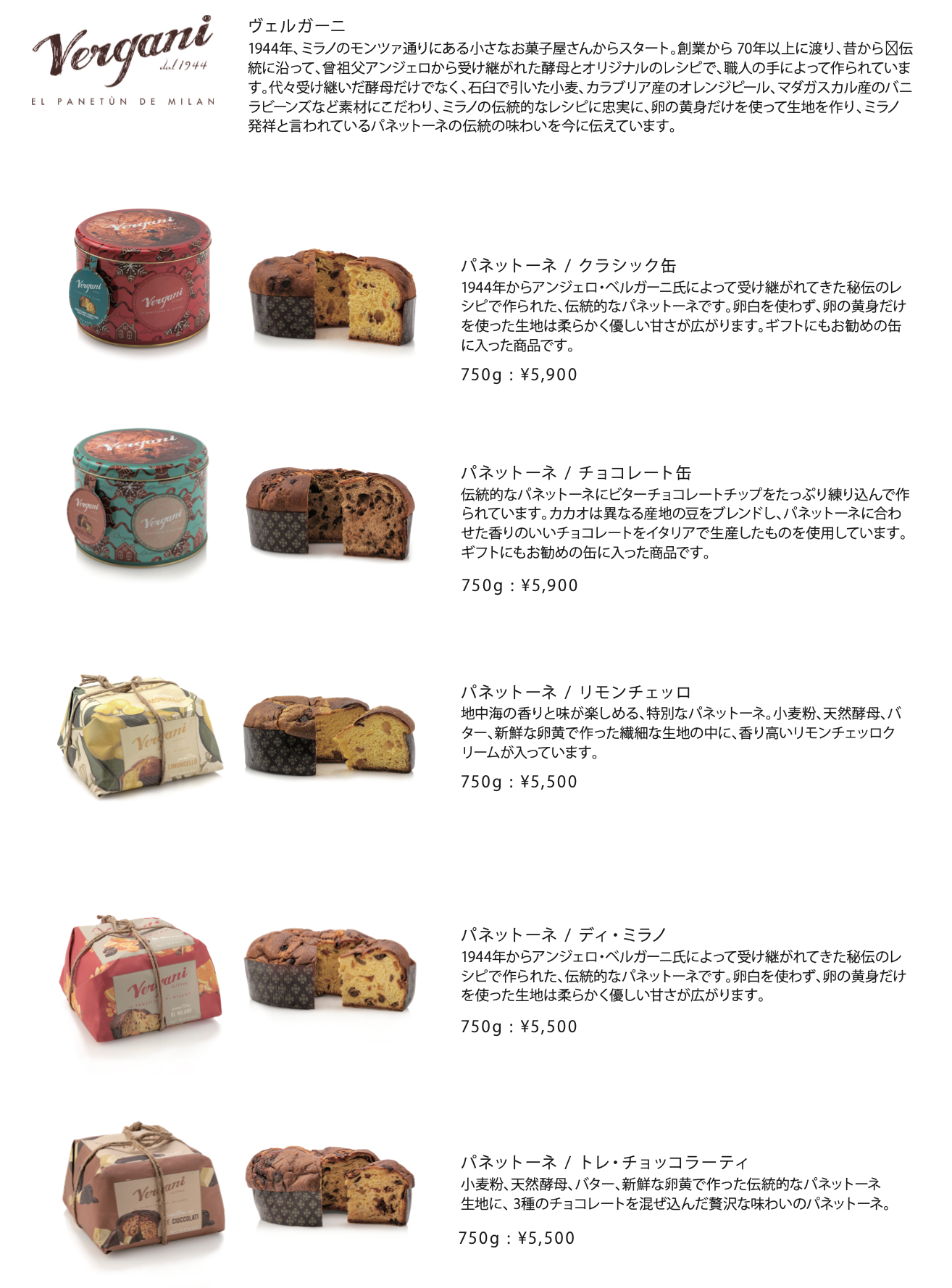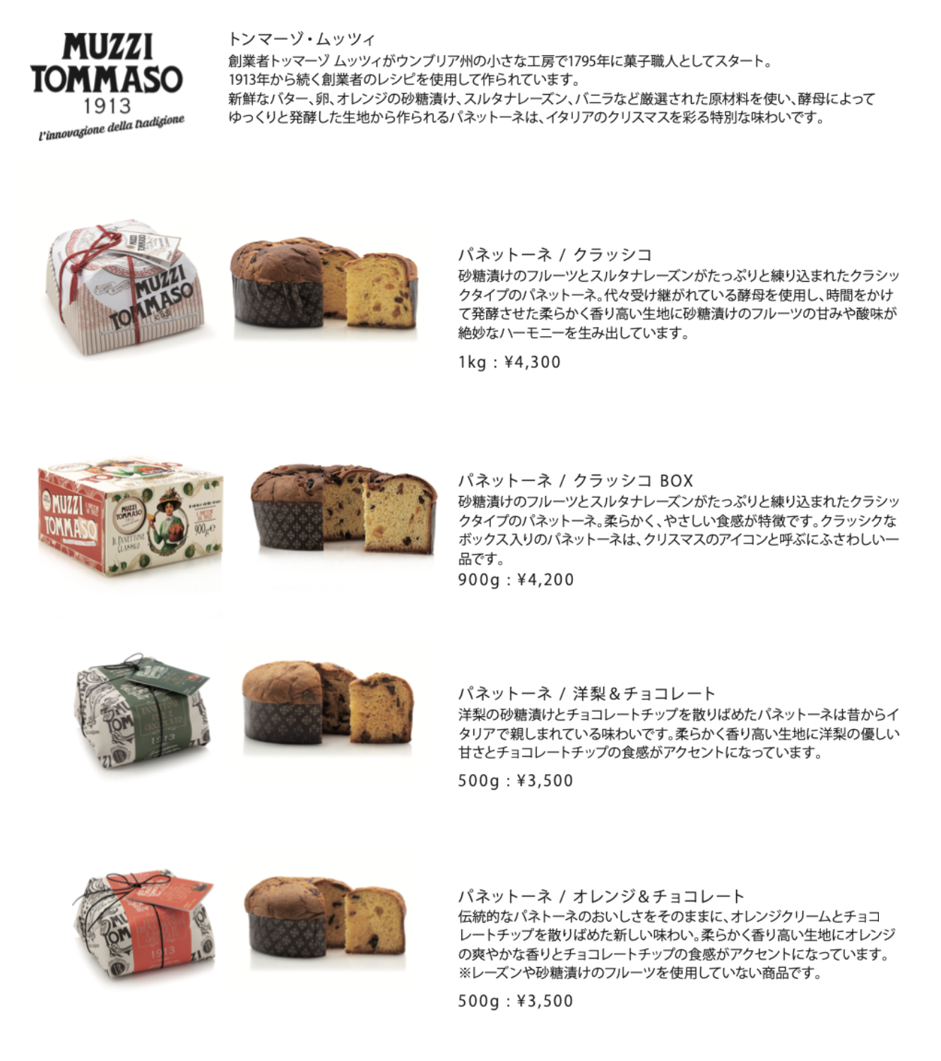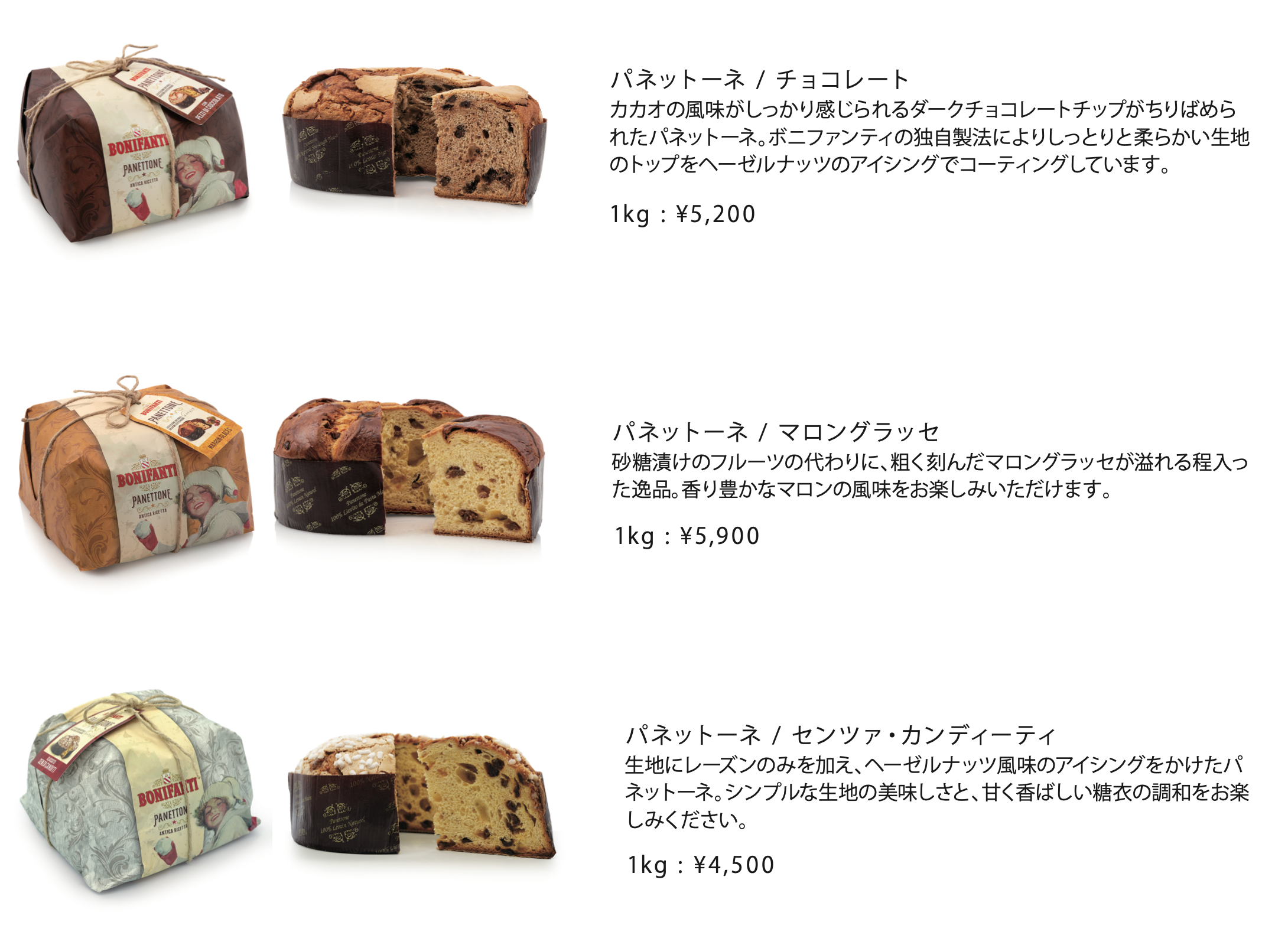 今年は毎年人気のパネットーネを中心に、新商品を加えて 17 類のパネットーネと 4 種類のパンドーロを ご用意しました。